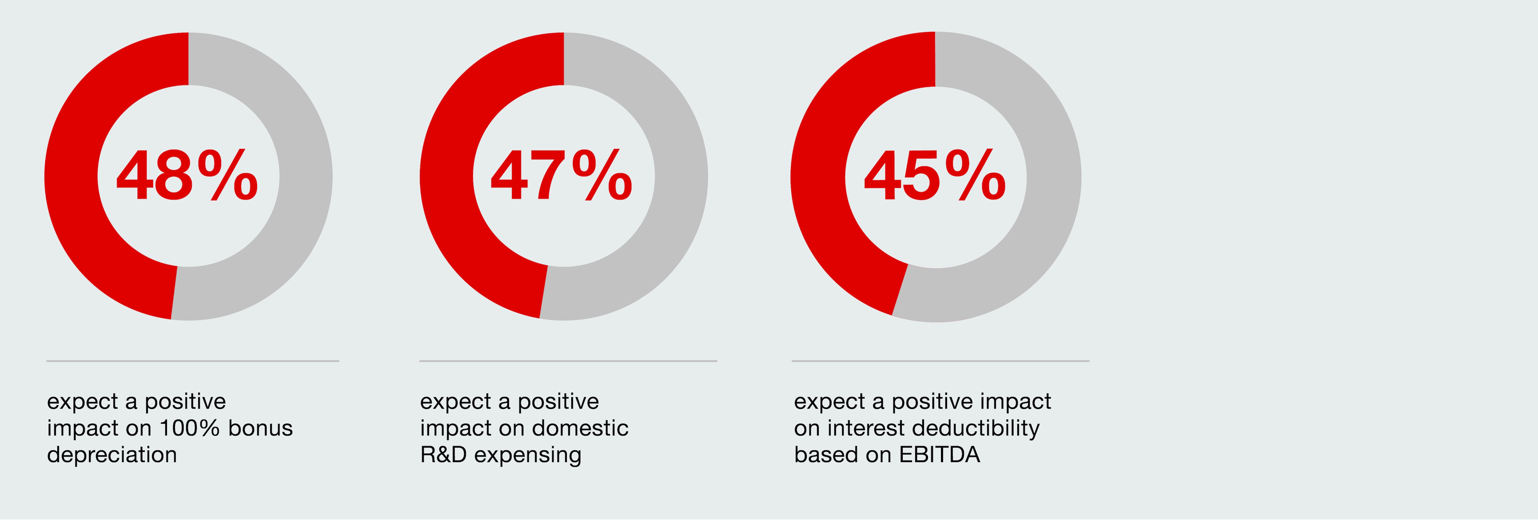 Bonus depreciation and domestic R&D expensing are emerging as the strongest catalysts for growth. Across industries, leaders see these provisions as the clearest path to unlocking liquidity and funding modernization.