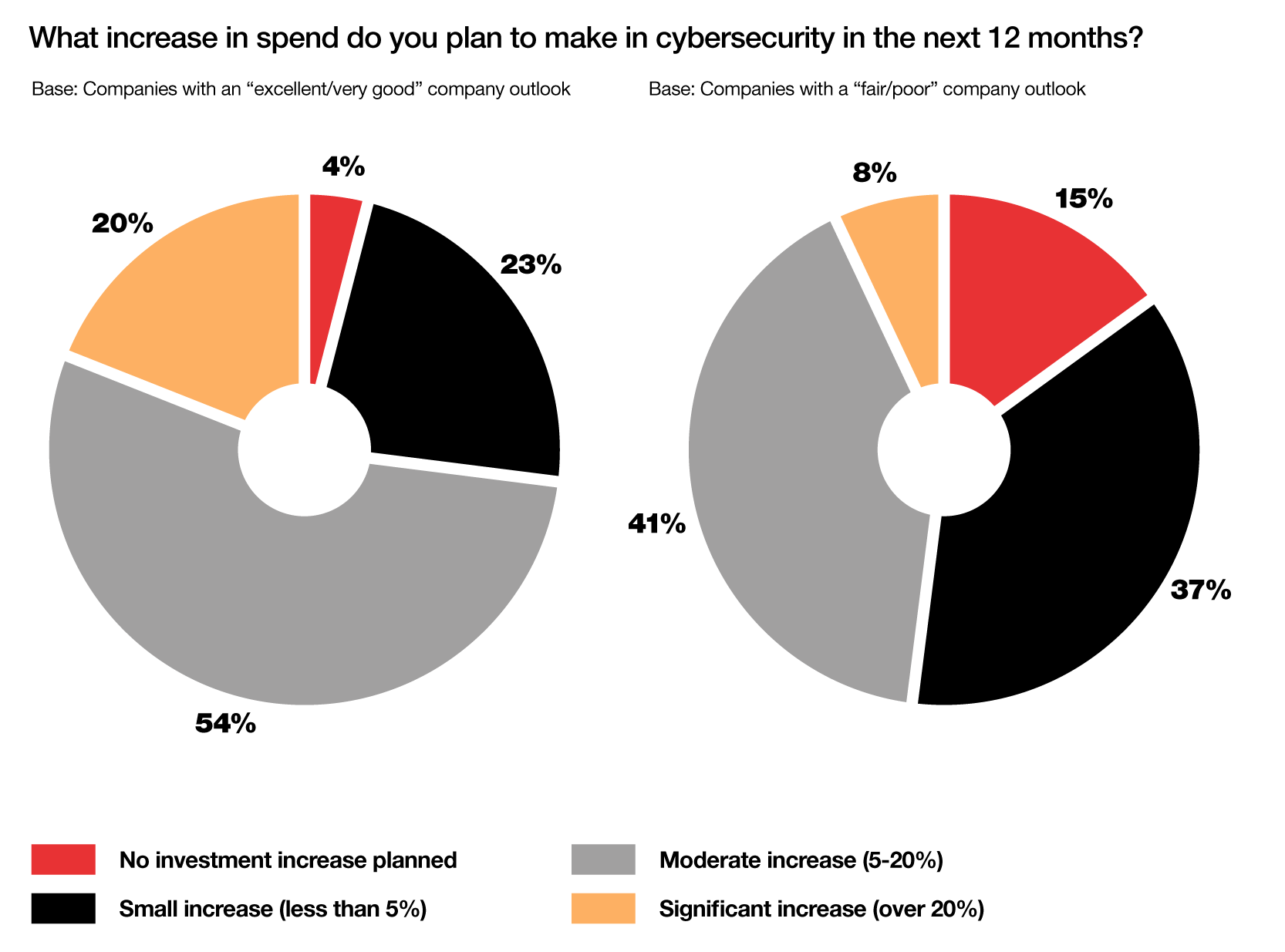 Companies with a more optimistic outlook are taking a proactive stance on cybersecurity, recognizing it as a foundation for long-term resilience.